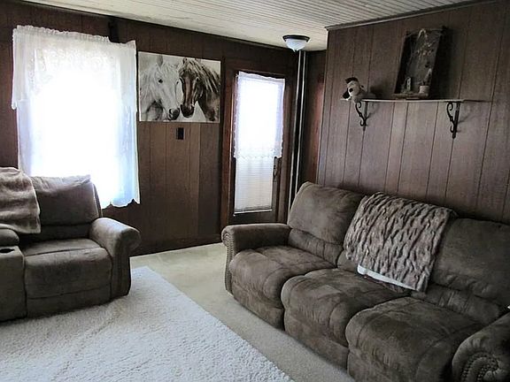 Sturdy 1.5-story home in Conemaugh Township School District offering comfort and potential. The main floor includes a carpeted living room and dining room, plus a functional kitchen with wood cabinets, vinyl flooring, refrigerator, and stove. Two bedrooms feature laminate flooring and closets for storage. The full bathroom is equipped with a corner shower, vanity, and toilet. A separate storage room with wood flooring adds extra space. The full, unfinished basement includes a partially finished bonus room, is plumbed for a second bathroom, and has laundry hook-ups with a washer included. Outdoor features include a covered front porch, upper-level balcony, and storage shed. A solid home with space to update and personalize.