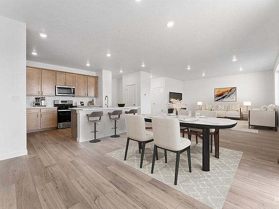 This stunning, two-story home showcases an open floor plan with 9-ft. ceilings and luxury vinyl plank flooring throughout the main living areas. The stylish kitchen boasts an island, 42-in. upper cabinets, full-height backsplash and stainless steel appliances, including a gas range. Upstairs, a loft provides space for a home office or playroom. The primary suite features a walk-in closet, dual-sink vanity and walk-in shower. Enjoy the outdoors on the back patio. PHOTO'S SIMILAR See sales counselor for approximate timing required for move-in ready homes.
