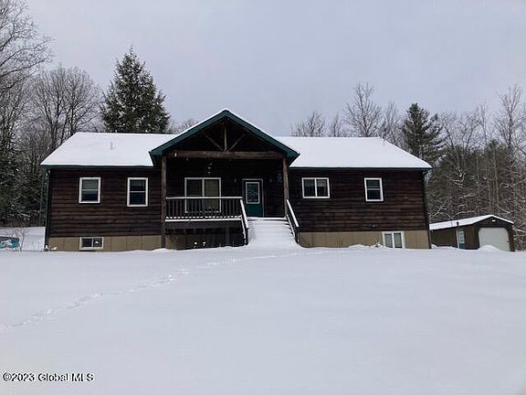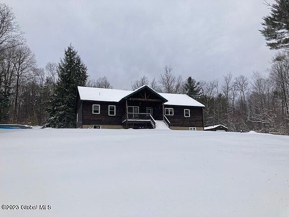 Opportunity awaits as this Beautiful 3 bedroom 3 bath ranch located on a gorgeous 7.6 acre private parcel hits the market! This home features an open floor plan with gleaming hardwood floors throughout, large living room with wood stove and vaulted ceiling, sun filled eat in kitchen and dining area, sharp large primary 1st floor bedroom with double closets and primary bath, 1st floor office, 1st floor laundry area! Huge finished basement with stove, new full bath and additional finished bonus area with walk out access! Awesome private backyard oasis with pool! An absolute must see!