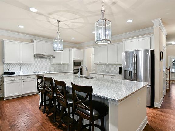 - Kitchen Features: Breakfast Bar, Eat-in Kitchen, Pantry, View to Family Room, Stone Counters, Kitchen Island, Breakfast Room, Cabinets White