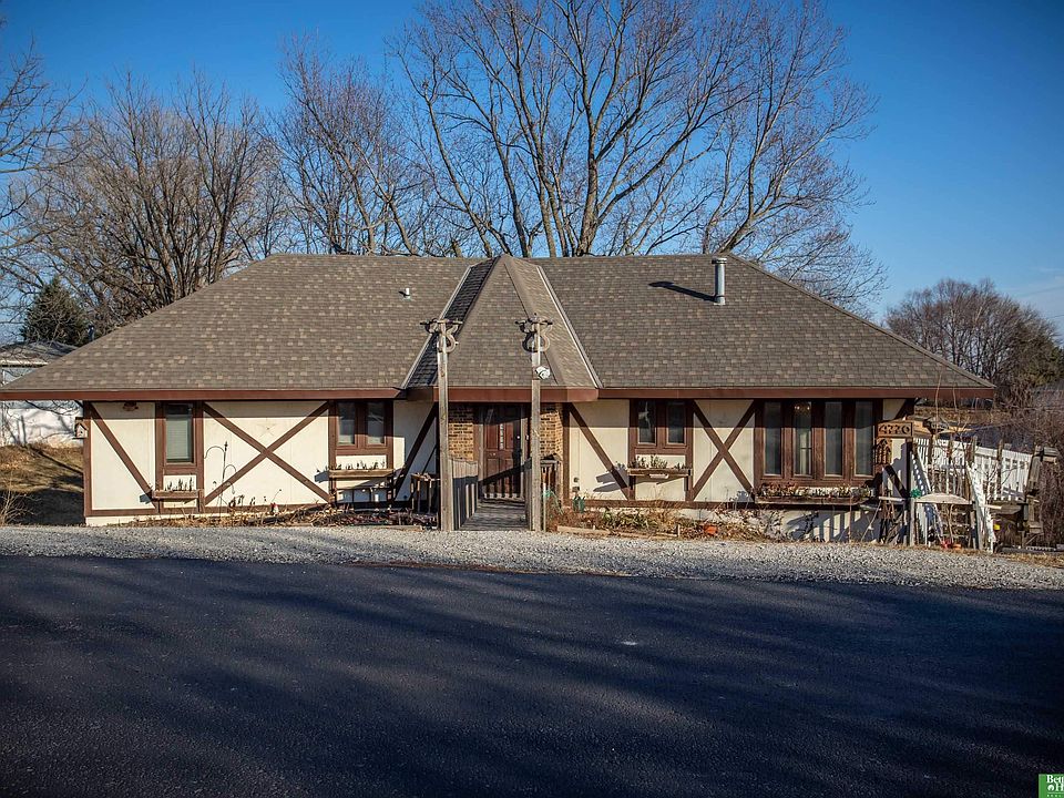 Incredible opportunity to own a truly unique custom built home in a gated lake community close to the metro. This "Fachwerkhaus" style home was custom built by the original owner who grew up in Austria. A great timbered turret rises above your head as you enter, illuminated by impressive hand-wrought iron chandeliers made by the builder's brother. Parquet floors came from Walter Scott's home. Beautiful views and a short walk to Lake Arrowhead. Large main floor master suite, and a bright, large breakfast room with coffered ceiling. Formal dining room with French doors to wrap-around deck. Main floor office or den. 2 wood burning fireplaces for cozy winter living. Finished lower level with large hearth and coffered ceiling with a large bar area. Lower level office is very bright and warm as it was originally an indoor greenhouse for growing orchids. Large main floor laundry/craft room. This is a must see home! AMA, Blair schools. Sold as is. Seller to make no repairs.