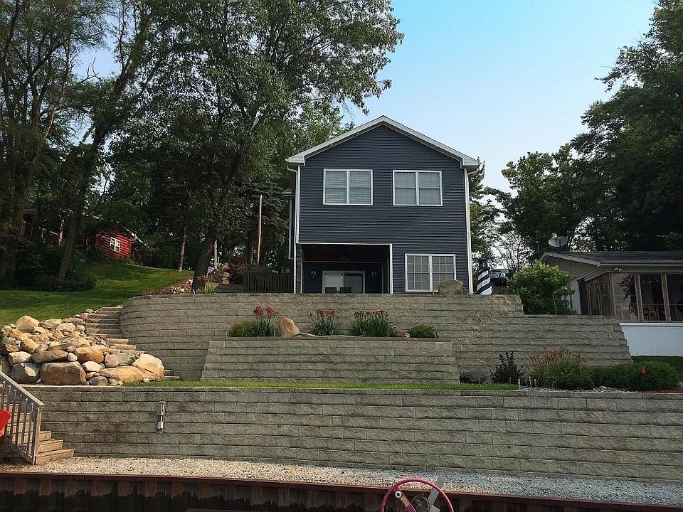 Prepare to fall in love with this lakefront, Lake Shafer Home. Perfect for a cottage or full time residency. Built in 2009. This meticulously maintained 4 bedroom, 2.5 bath has gorgeous lake and golf course views & is the perfect place to relax and entertain. The oversized master suite has a cathedral ceiling & is lined with large windows to capture the view. Master bath contains a custom tiled jet tub. Additional bedrooms have ample space for multiple beds. The lower level has 9' ceilings & an open concept floor plan with sunroom and convenient kitchen off the covered patio. The outside is sure to please with an impressive custom retaining wall, charming landscaping, a beautiful concrete stamped patio and a grassy are with plenty of room for family and friends to entertain. You can't beat the sunset views and Indiana Beach located right around the bend. The property is topped off with 2 extra lots in the back that could be used for additional parking and the left lot has potential to be built on.