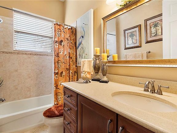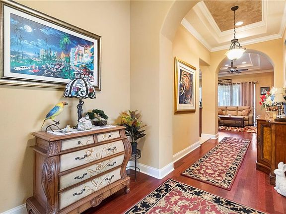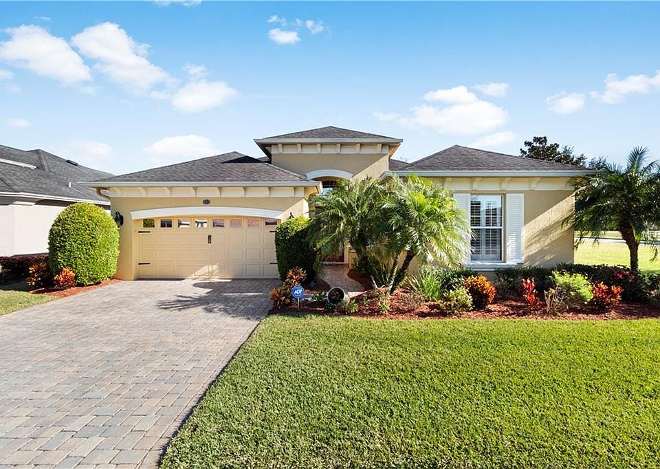 When you see this fabulous Nunez built, 3bd/2ba former model home, then your search will be over because you will have fallen in love with this home. This home is LOADED with upgrades, like triple tray ceilings in the living and dining ares, plus a double tray ceiling in the master bedroom, high ceilings throughout the rest of the home, crown moldings throughout, even in the Garage. Custom cabinets and granite counter tops in kitchen and bathrooms, wood and tile floors in every room except carpet in Master bedroom and one guest room, and more, just too many amenities to list. All this situated on a corner lot with tranquil views of the lake from your porch.The gated Morgan Creek community also features a community pool, playground and tennis courts that enhance your Florida lifestyle.