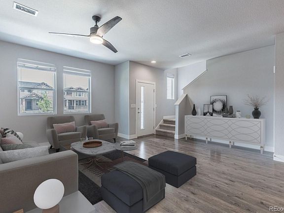 Welcome home to this beautiful contemporary style home in the very popular Avion at Denver Connection. This highly desired community is located in a prime location between Downtown Denver and DIA. Boasting both traditional and contemporary architectural styles. Here you will have the opportunity to enjoy an active Colorado lifestyle with 40 acres of parks and amenities, all encompassing a 10-acre city park, dog park, and "community hub" for entertainment and socializing. Once inside this spectacular home you will begin to take in all of the amazing fine features and quality upgrades that it has to offer. The spacious true open concept floor plan is flooded with natural light through the large windows with soaring ceilings and extended wide-plank wood floors. The gourmet kitchen is a Chef's dream! Enjoy a compliment of white Shaker-style cabinets, stainless steel appliances, gorgeous expanded granite, custom glass tile back-splash and beautiful lighting. The floor plan perfectly flows into the large family room where you will find a relaxing space with room for the largest mounted T.V. The main floor is complete with a dining area and guest bathroom. The upper level features a luxurious master suite. Indulge yourself in the spa-like en suite with a double vanity, shower and all accented with beautiful custom tile. The upper level is complete with two additional bedrooms, a full bathroom and a convenient laundry area. You will love the extended 2 car attached garage and enclosed front porch area where you can enjoy summer days/nights or the perfect space for BBQ's and entertaining. All appliances included! Hurry, this home won't last!!!