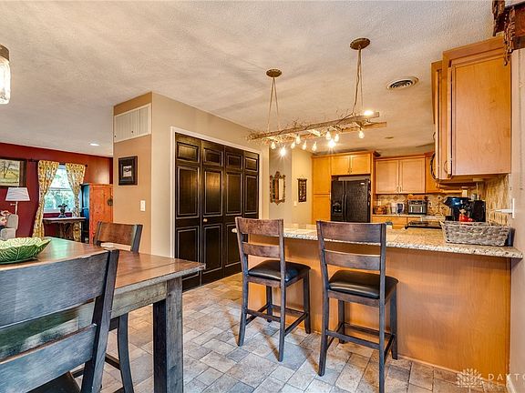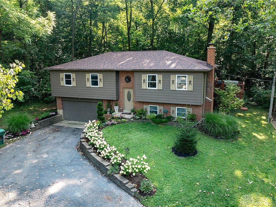 Welcome home to this idyllic private wooded retreat. Enjoy country living in the city. This home has it all. Nestled on very private acre lot w/small stream running along the side of property. Step inside this lovely home...you will not be disappointed. Spacious Living Room offers lots of space for entertaining. Dining/Breakfast Room can accommodate is flexible to use either formal or informal. Updated Kitchen features gorgeous maple cabinets with Lazy Susans and big drawers for storage plus they are all soft close. Hang with the cook or enjoy a snack at the Breakfast Bar. Stunning granite counters accented by tile backsplash. Huge Pantry is perfect for any size family. Two big hall closets offer lots of storage. Primary Bedroom is tucked in rear corner. Two Additional Bedrooms plus neutral full bathroom complete this level. Lower Level features Family Room, 4th Bedroom plus full bathroom. Laundry plus mechanical room are also located on this level. Enjoy peace, solitude and nature on the back deck whether sitting on your deck furniture or relaxing in the hot tub. 2 Car attached garage has been converted to a gym for current owners. Awesome 36x24 insulated Pole Barn offers lots of space for whatever your needs may be. Luxury, secured chicken coop will have even your chickens loving this place. If you still don't have enough storage outdoors there's also a 2 car carport to house your toys. Driveway offers easy maneuvering when parking your trailers. Seller says there's lots of bulbs to enjoy during the spring. Updates include roof plus gutter guards22, hot water heater 21, Chimney partially rebuilt20, replacement windows, updated 200amp electric panel. Septic is sand filtered, cleaned19. So much to see! Close to highways, WPAFB, restaurants, shopping and more.