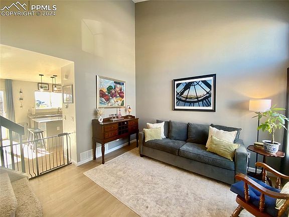 Beautiful 2 story light & bright home, nestled in Woodside at Briargate, with the highly rated District 20 schools. As you enter you will be greeted by a vaulted ceiling living room that connects to an updated kitchen with: high level granite counter tops & island, attractive backsplash, & newer stainless steel appliances. There is a dining area next to the kitchen with a walk out slider to a ground level composite deck with wood pergola & mountain views. The rear fenced yard is fully landscaped with automatic sprinklers, a play area & an additional patio for entertaining. The open floor plan, kitchen & dining, connects to a spacious family room with a gas log fireplace & updated fireplace hearth. There is a combined main level 1/2 bath & laundry room plus a doggie door. Upstairs is the primary bedroom, with Pikes Peak views, a walk in closet & 5 piece bath plus an adjoining 16' x 10' room for a nursery, office, or sitting area. There are 2 additional bedrooms upstairs with a full bath. The unfinished basement, with insulation, is ready for expansion. Some of the many improvements include: New roof-10/2023, New LVP (Luxury Vinyl Plank flooring) throughout the main level & new main trim board, new light fixtures in kitchen, living room, dining area, & primary bedroom. New painted kitchen cabinets with new hardware & a new kitchen faucet, both upstairs baths have new sinks & new painted vanities, new window well covers with interior lock release, primary bath has a new glass shower enclosure, new window coverings, updated fireplace hearth & new side yard play area. The Briargate Trail winds through the neighborhood for walking/biking & family fun. Walking distance to 4 neighborhood parks. Close to schools, shopping, restaurants, & hospitals. Beautifully maintained home in a lovely neighborhood. Pride of ownership abounds. WELCOME HOME!