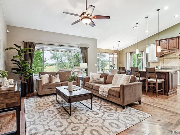 This is it! Highly maintained Ranch-style home with custom updates/features rare in this price range! This 3 bed plus office, 3 bath & finished basement home backs to Open Space. Enter to find freshly refinished hardwood floors throughout the main level. Great room layout includes family room w/3-sided fireplace/vaulted ceilings, dining area & remodeled kitchen. Enjoy entertaining & meal prep again in this gourmet kitchen! Tasteful updates include hi-end stainless steel appliances, ample custom cabinets w/molding & under lighting, large island w/storage & seating, spacious pantry, plus granite counters/tile backsplash. Amazing Primary Suite boasts open space views (sun shade on window!), access to back deck. Spa-like, remodeled Primary bath has dual sink vanity, cabinets w/motion lights, heated flooring/towel rack, awesome walk-in shower plus massive walk-in closet w/organizers. Completing the main level: Bed #2 has Murphy bed, Office w/French doors, updated full bath w/heated floors, & fully reworked laundry room w/W&D & cabinets. Head outside to the park-like backyard! Multi-tiered deck/dual patios with speakers that include expanded mahogany deck w/retractable awning, stamped concrete patio w/hot tub, & lower patio for more entertaining space. Very private w/mature trees & beautiful landscaping plus storage shed & under deck storage! Oversized side fence gate & back gate leading to open space, reservoir, park & trails. Smartly finished basement offers more space: Wet bar w/cabinets, mini fridge, sink & microwave; Theater/Media room w/recliners & TV/speakers; Game room w/pool table & sitting area w/pellet stove. Bedroom #3 has closet & removable wall planks to reveal window (currently used as workshop), nearby updated 3/4 bath. Large storage room w/shelves. Oversized garage has cabinets/shelving, floor coating, exterior access door. BRAND NEW roof & gutters. Cherry Creek Schools! Low HOA. No detail overlooked; too much to list! Includes 14-mo Buyer’s Warranty.
