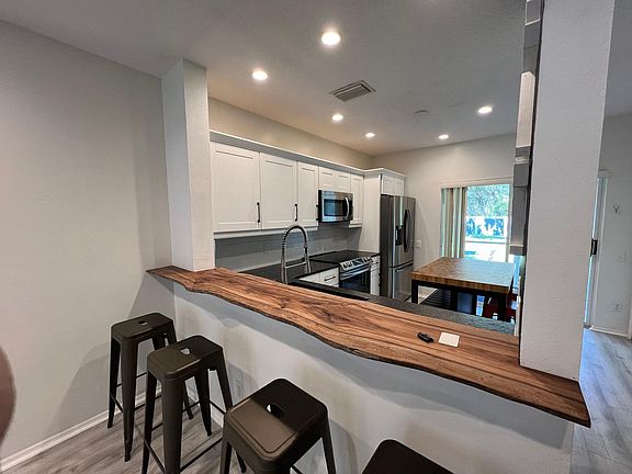 Newly renovated townhome in Sabal Key gated community with newly renovated recreational facilities for a family or individual to enjoy. This townhome has all new appliances, new kitchen and bathrooms with a great pond view from screen lanai and master bedroom. The living area downstairs is well lite with natural light and a new a half bath. The upstairs area includes a master bedroom with a large master suite and second bedroom with able space. Very desirable corner unit with plenty of parking and large back and side yard. The screened in back lanai with pond view is great for reading a book or drinking your morning coffee. Price includes high-speed internet, water, trash and grass cutting. Currently available April 1st 2023. Renter pays for Electric