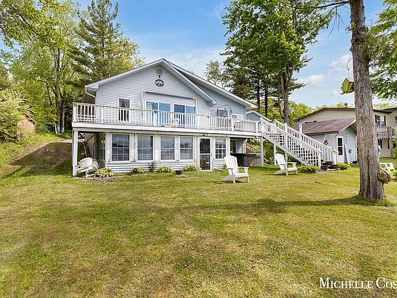 Don't miss this rare opportunity to own an updated 2 bed, 1.5 bath lakefront home on all sports Little Whitefish Lake with 83 feet of private frontage! This property offers a blend of modern updates and relaxed lake living with the main level fully updated throughout with new appliances, fresh flooring and updated bathroom and laundry room. The kitchen, dining and living rooms are all very spacious, while the main level master bedroom offers a large walk in closest, connected to the laundry room and updated bathroom for easy convenience. The second bedroom can be used as a guest room or office space as well. The multiple glass sliding doors off of the main living allows for plenty of natural light, a direct view of the water, and entry out onto a large deck overlooking the expansive yard and beautiful lake - truly perfect for entertaining and enjoying all that lake life has to offer! The fully finished basement includes a half bath and plenty of extra living space for new owners to make their own! It is complete with a large storage room and a spacious sunroom that leads into the backyard. As an added bonus, a one stall garage has been recently added onto the home, and this sale includes a second parcel directly across the street featuring an additional .69 acres and a large polebarn - ideal for boat storage and lake toys. Lastly, this home is located just 30 minutes north of Grand Rapids and a few minutes off of the highway for easy access to stores, schools, and work. Whether you're looking for a weekend getaway or year-round home, this property has it all. Schedule your showing today and be able to enjoy lakefront living just in time for summer!