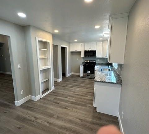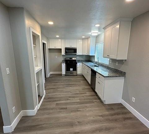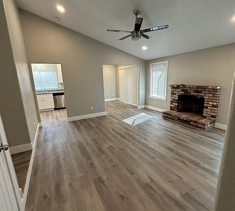Completely remodeled inside, new kitchen with White Shaker cabinets and slab granite countertops, new energy efficient appliances, new luxury vinyl plank flooring throughout the house, new energy efficient LED recessed lighting and ceiling fans, completely remodeled new bathrooms including tub, shower vanities, toilets, etc. New doors and baseboards and house has been freshly painted inside. Family room has a fireplace and vaulted ceiling. New energy efficient heater and air conditioner. Close to schools and shopping. Looking for at least a 1 year lease. Move in costs include 1 months rent and security deposit. Total move in will be $5395