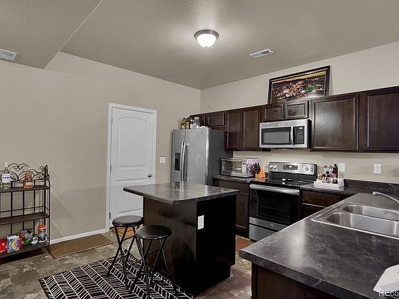 This beautiful townhome is a must see! This one-owner, 2 story, 3 bedroom, 3 bathroom townhome with attached 2 car garage, A/C and security system is located in the newer Villa Mirage gated complex. Located centrally along the Powers corridor, this home is just minutes to Peterson AFB, hospitals, fire stations, schools and parks, as well as close proximity to a variety of entertainment, shopping, restaurant, and grocery options. Enter the home through the gated and covered front patio to a linoleum entry way with a coat closet and access to a large half bathroom. From there the main level floor plan offers a large living room with ceiling fan that is open to the spacious eat-in kitchen with smart thermostat. The kitchen is finished in upgraded stainless steel GE appliances, boasts plenty of counter and cabinet space, a kitchen island and room for a dining table and chairs. The kitchen also has access to both an oversized pantry and attached 2 car garage with smart garage opener. Head up stairs past the picture window to the second floor. On one side of the floor you will find the large master bedroom suite with ceiling fan, walk-in closet and full bathroom with dual vanities, built-in storage, and private toilet room. At the other end of the hall are two additional bedrooms with ceiling fans with a shared full bathroom with linen closet and a sizable laundry room that comes with the washer and dryer in between. The Villa Mirage community comes with a number of great features including gated entry, a swimming pool and a clubhouse that boasts beautiful mountain views, a gym, a lounge, conference room, rent-able recreation room with a deck and entertainment kitchen. Across the street from the community is a large public park with tennis courts, a basketball court, a playground, picnic tables and plenty of green space to play or relax. This great town home has it all...Location, Layout and Amenities. Come see it soon as it's not going to last long.