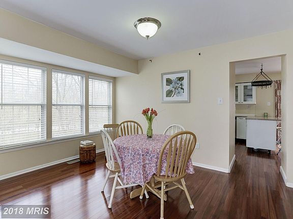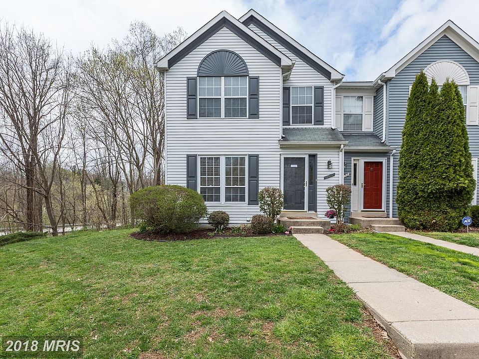 Stunning 3 BR,3.5 BA end unit TH w/updated kitchen: Custom cabinets & silestone counters, stainless steel appliance, pantry & breakfast area overlooking deck & woods. Hardwood floors in Living Rm, Dining Rm & Kitchen. Large master BR w/ high ceilings. Finished Basement w/Berber carpet built-in bookcase & Updated Full BA. Storage & walkout to patio. Wonderful lot with back & sides to wooded area.