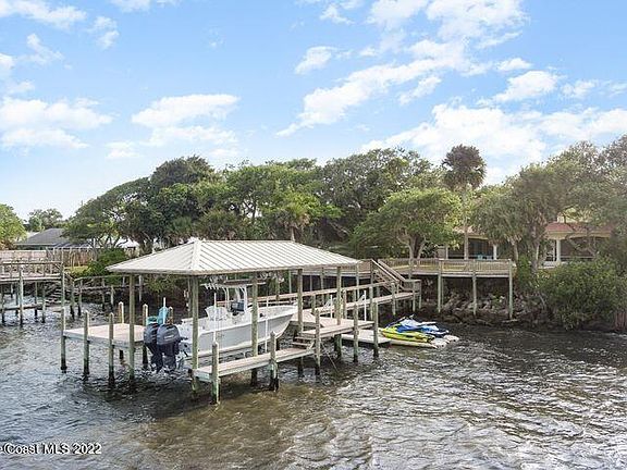 GORGEOUS Waterfront Home, tucked away on OVER 1/2 acre, Deep water access, a covered 10,000lb boat lift, and jet ski docks. This is It! As you come up the long pavered driveway you see the Impressive Double Glass Door entryway & side entry 3 car garage. Upon entering your met with soaring ceilings and Direct River views. The master suite is on the ground floor. The master bath features a garden tub, spacious shower, and separate vanities. There are his and hers closets & French doors that lead out to the patio. The office is also located downstairs along with a full guest bath with access to the patio and pool. The Great Room is a comfortable space to spend time with family & friends. Triple Sliders Lead to the extended patio with tongue in groove ceiling overlooking the pool and River.