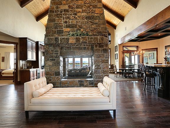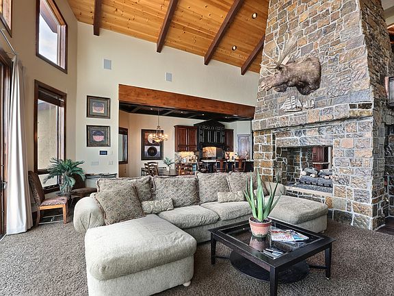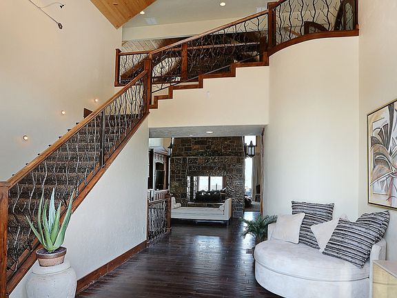 Paradise on the lake w/ incredible vws of the mntns stretching across towering windows.2 master suites on each level complete w/ elevator.Both levels include full gourmet kitchens & living.Majestic entry & grandiose 2 story vaulted main level. Custom designed wrought iron stairs along w/ a 2 story floor to ceiling stone fireplace that is a center focal point of this well crafted home.