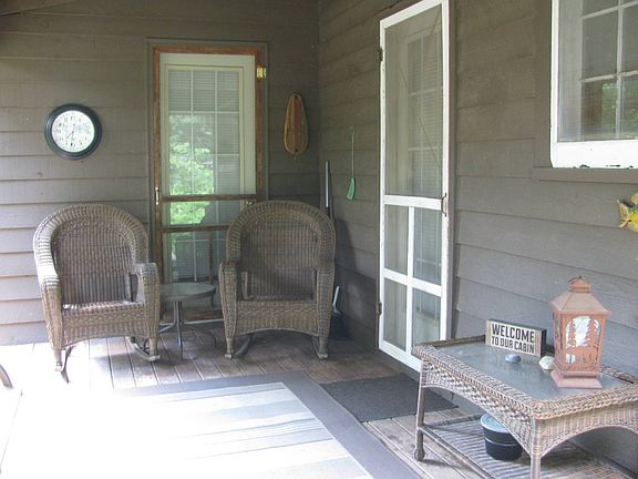 This spacious 2 bedroom, 1 bathroom lake property has all the room you need to spread out and enjoy your lake time. It is immaculate inside and out. The character of the property has been preserved even with the many updates. The kitchen has been nicely done with oak cabinetry and plenty of counterspace with peninsula. It also houses the washer and dryer which will stay with the property along with the rest of the appliances. The dining room has a table for 6, a futon, and a built-in bench seat so you can cozy up for some reading time or game playing with family and friends. Enjoy the natural sunlight in the large living room that has two oversized windows with great lake views. Two large bedrooms and a bathroom make up the rest of the cabin. There is electric heat and 200A service on this property. Outdoors you will find a quaint back porch with swing and waterside is a large deck with lots of patio furniture that will stay. A two-stall garage for cars and/or lake toys and plenty of parking for family and friends. Down at the water you can store your lake toys in the boathouse and the docks and boat lift stay with the property. Most of the furniture and personal property is staying with this home and it is all in great condition. The location is prime - just off Highway 15 and positioned in about the middle of all the lake amenities that are available. Two restaurants in the immediate area.