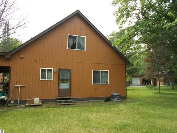 PRIVACY! This place has a sprawling yard to garden or play. Tons of wildlife visit, 70 feet of covered porch to watch and enjoy. This newer built home has the feel everyone is looking for in an up-north cottage or year round home. Knotty pine all the way to the tip of the cathedral ceiling. Updated kitchen complete with dishwasher, garbage disposal, and convection oven. Island bar area and open concept. Massive main floor master. Mud room, large bathroom with laundry, and ample closets. Additional older home that can be brought back for an in-law or bunk house. Garden shed, fire pit and many landscape and fruit trees, concord grape patch and 5 in well. Central air and high speed internet allows you to work or school from home. This property has a 2nd well.