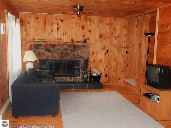 Sugar sand Lake Huron Access is just at the end of the road from this year round home!! What a great opportunity to enjoy Lake Huron at this price! This 3 bedroom chalet is jut the right mix of "Up North" and up dated. Tongue and groove wood throughout most of the home and a stone fireplace to relax in front of after a day at the beach. With one bedroom on the main floor and two upstairs there is plenty of room. Have toys? This home sits on a large lot and also has a 2 car garage.