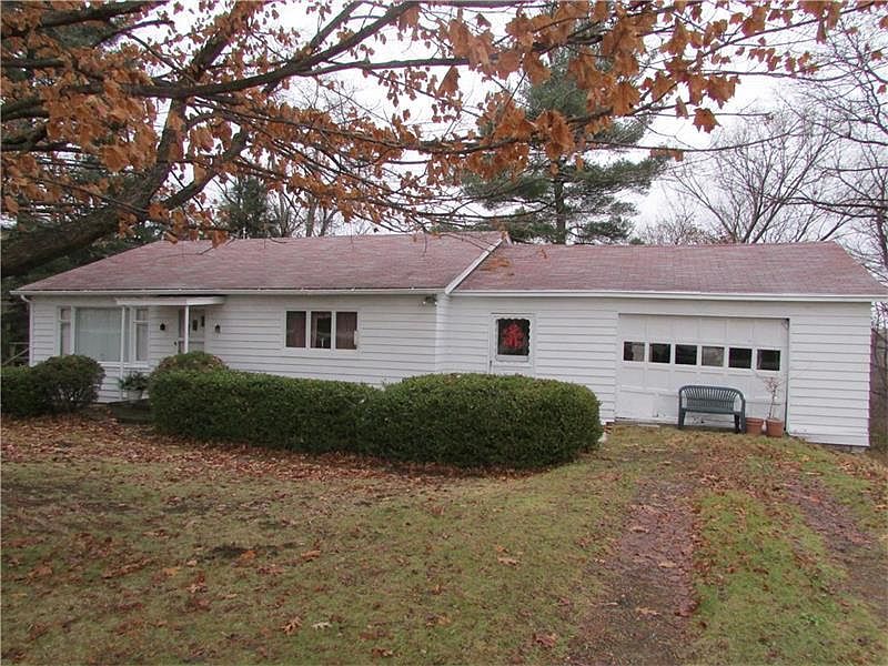 Cozy ranch on 2.977 Acres, mostly wooded. Side deck. Large eat in kitchen. 1 Full Bath. Attached 1 car garage and 1 car integral in rear. Full basement. Newer Electric furnace/heat pump, updated breaker box. Close to Southside Area Schools and airport,shopping. This parcel was just sub-divided so the map pin may not be positioned properly. Basement is being painted, no pics till finished.