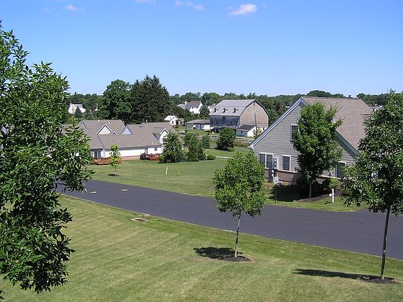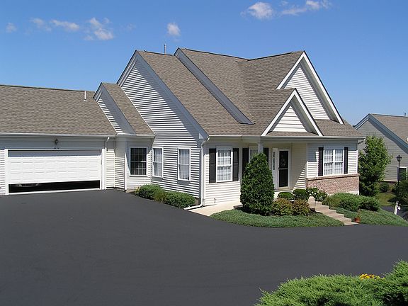 Twin Belmont with 2 car garage and full basement with beautiful view from rear deck. Very desirable 55+ community. Finished upstairs with bedroom, bathroom, storage room and hall sitting area.