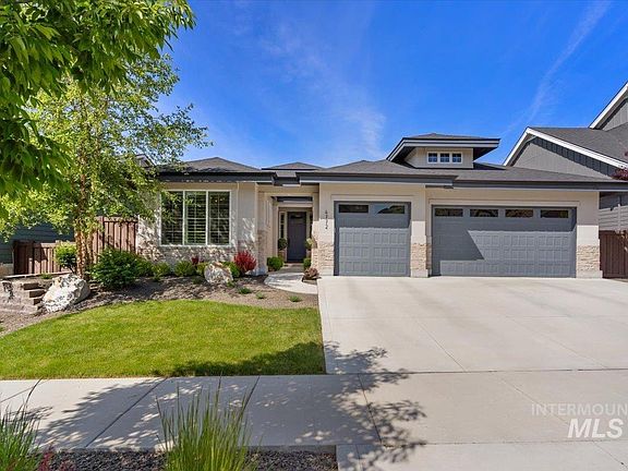 Gorgeous home located in Northwest Boise and nestled in the scenic Boise foothills with STUNNING VIEWS! This single-level stunner is loaded with upgrades and will command your attention from the moment you enter. With three bedrooms and a formal dining room or flex area, this beautiful home provides an open space great for entertaining, inside and out. Once out back on your covered patio with panoramic views, you may never want to leave. Kitchen upgrades include a pot filler, custom hood vent, Thermador cooktop, two dishwashers, and an oversized island, just for starters. This home also has solar tubes that provide an excellent source of natural light. There is gorgeous millwork and wallpaper, a water softener, custom shutters and automated roman shades and so many more items that we added a full features list in the docs tab, as there are too many to list. The community boasts a large pool and hundreds of acres of open space and trails.