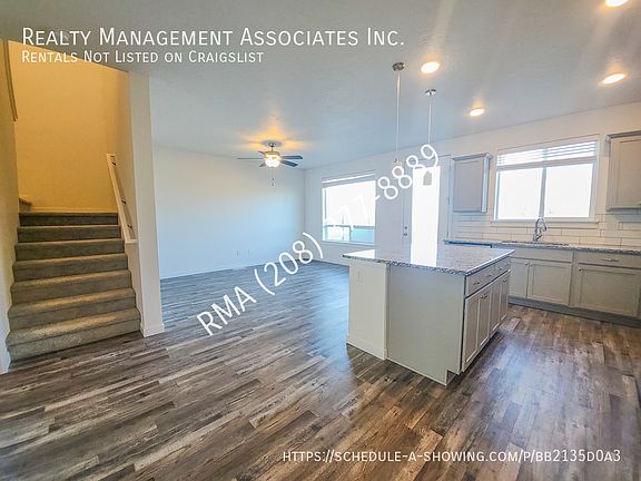 Fabulous 3-bedroom, 2.5-bathroom Townhome located in West Meridian! Inside you will find open concept living space, with a large living room, high ceiling, and luxury vinyl plank flooring throughout the main floor! The spacious kitchen has a large, center island that is granite, great for entertaining! There is plenty of cabinet, drawer, and counter space, stainless-steel appliances, subway tile backsplash, pantry, and dining space! There is a guest half bath on the main level. Upstairs, you will find the Primary bedroom is great in size and has an on-suite bathroom! The bathroom has dual sinks, large, tiled shower, and the walk-in closet is spacious and deep, great for your storage needs! The other 2 bedrooms are nicely sized, one of them has a walk-in closet as well. There is a full bathroom with a single vanity and shower/tub combo. The laundry room is also located upstairs! The home has a private yard with zeroscape landscaping, and the HOA maintains the front and back, no yardwork! The home does have a ring camera system in the front and back, along with a security system panel that you can use with a paid subscription at your discretion. This home is close to freeway access, shopping, dining, and more, it's the perfect location! Don't miss your opportunity on this stunning home! 12 Month Lease and Property Liability Insurance Required. Tenant is responsible for all utilities. This is a NO pet property. This property is located with-in the Hensley Subdivision and subject to the residential rules and regulations of the HOA. For questions about residential rules or questions about the HOA CC&Rs please reach out to the HOA Management: Engelhardt Management, Inc