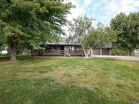 Looking for an acreage with a short commute and no gravel? Nestled on 4.29 acres with a variety of established trees you will find your dream home, the ultimate shop/man cave, and much more all located within 20 minutes of Sioux Falls! The main floor is thoughtfully designed with soaring, vaulted ceilings. A beautifully remodeled kitchen is accompanied by two bedrooms, a tile bath with double vanity, main floor laundry room with locker system, and access to a huge wrap around deck. The basement was remodeled in 2018 and offers a gigantic family room plus another bedroom and bathroom. An attached, heated, three stall garage is just the start of garage space. Wait till you see the 46x72 shop. A showroom with numerous windows can be used to showcase your hobbies or host your next large event. Separate shop areas include in floor heat and 10x12 overhead doors. Any extras can go in the double detached garage. Opportunity only knocks once, call for a showing today!