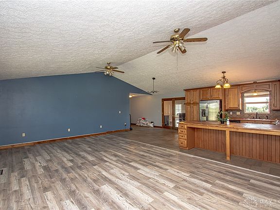 Nestled on over an acre of picturesque countryside, this inviting three-bedroom, two-bath ranch house offers a serene escape with modern amenities. The expansive open floor plan boasts cathedral ceilings, creating an airy and welcoming ambiance throughout the main living areas. Step into the living room, seamlessly connected to a large kitchen featuring ample counter seating – perfect for entertaining or casual family meals. The open layout ensures you're always part of the conversation, whether you're preparing a feast or relaxing in the living area. The home features both a recreation room and a family room, providing plenty of space for gatherings and activities. The family room is particularly cozy, with a pellet stove that adds warmth and charm. From here, walk out to a stunning deck that wraps around the rear of the home, offering breathtaking views of the surrounding countryside – an ideal spot for morning coffee or evening relaxation. Adjacent to the family room, the home office comes complete with built-in desks, making it a perfect space for remote work or study. Retreat to the master bedroom, which includes a generous walk-in closet and an en-suite bath with a luxurious jetted tub. Large windows throughout the home frame lovely views of the peaceful landscape, bringing the beauty of the outdoors inside. This charming home offers a tranquil country lifestyle with all the conveniences you need. Don't miss the opportunity to make this your own private haven.