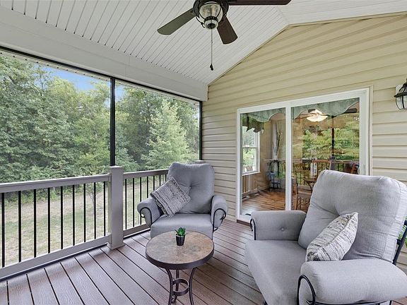 Gorgeous Great room Ranch with upgraded floorplan located in Seckman Schools! Entry Foyer opens to vaulted great room featuring striking flooring and a gas fireplace with raised hearth and brick surround. Dining area boasts sliding glass door opening to cozy 12x11 screened-in porch overlooking a peaceful and parklike back yard- Perfect for relaxing with a warm drink on a crisp fall morning. Open kitchen space accented by stainless steel appliances, butterfly island with breakfast bar, and pantry. Main Floor Laundry offers utility sink and cabinet storage.  Main Floor Master Suite boasts spacious walk-in closet and luxury bath with his/hers double vanities, large shower and corner soaking tub. Main level also has 2 additional bedrooms, nicely sized and a full hall bath.  Walkout lower level awaits your future designs.  3-Car Attached Garage is a bonus! MUST SEE!