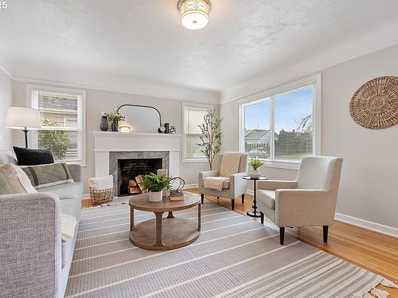 Nestled in the University Park neighborhood, this charming mid-century home offers a blend of classic character and modern updates. Situated by the University of Portland and centrally located between St. Johns, Portsmouth, and Kenton neighborhoods, this spacious 6-bedroom, 2-bathroom home provides both convenience and comfort. The newly resurfaced original hardwood floors add warmth to the dining and living rooms. The cozy living room has plenty of natural light and features a quaint fireplace. The updated kitchen boasts brand-new stainless-steel appliances and resurfaced cabinets and countertops. The home’s layout includes two bedrooms on the main floor, a private upper-level bedroom with carpeting, and a fully finished basement with three additional bedrooms. Both bathrooms and kitchen floors have been updated, as well as the basement with luxury vinyl plank flooring for a modern touch. The expansive backyard is ready to be transformed into your own urban oasis.