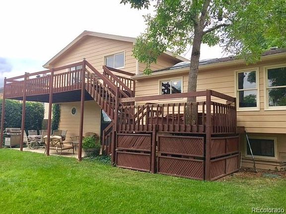 Location, location, location, this is the ideal location for Colorado living! You can be in the mountains in 5 minutes, close to shopping, parks, trails, schools, public transit and several major highways. Newer roof, new exterior paint, new gas fireplace, and updated kitchen. One of the few custom built homes in Weaver Creek. Formal living room, formal dinning room, oversized garage, basement has a finished playroom which would make a great media room or man cave. Wonderful master suite complete with large deck with mountain views, sitting area, and walk-in closet. The backyard is a highlight with mature shade trees, two level deck and patio, hot tub, shed, playhouse, garden area, fruit trees, large flat grass area, mountain views, plus backs to greenbelt and trails.