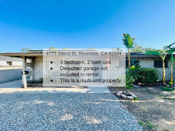 This 1680 square foot apartment home has 3 bedrooms and 2.0 bathrooms. This home is located at 4773 Sierra St, Riverside, CA 92504.