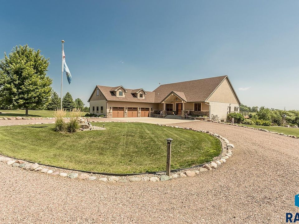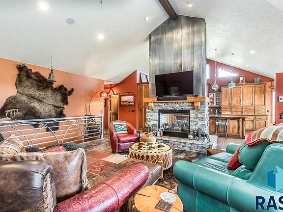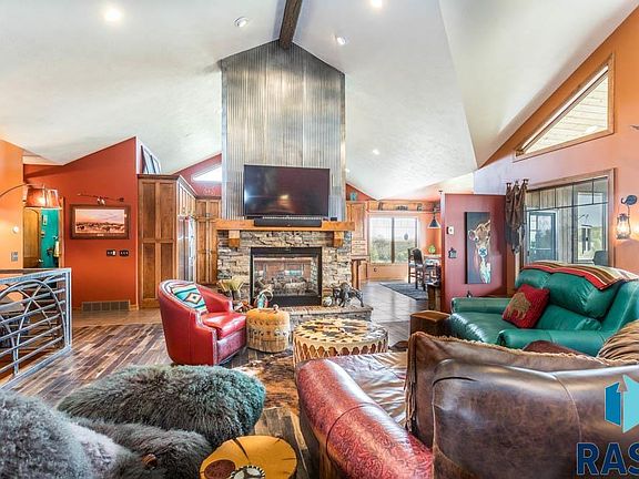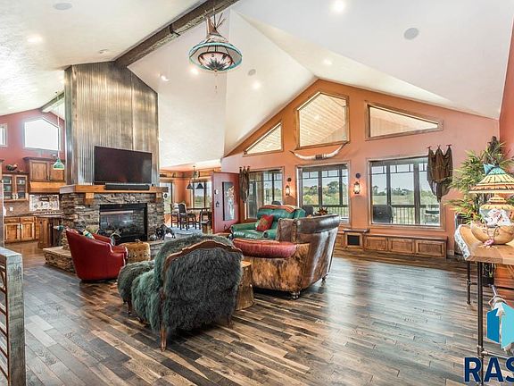 This Breath-taking Private 10-acre Ranch Walk-Out Home is Unbelievable. Located just minutes from East Sioux Falls. Custom finishes throughout the home. Come walk the property and enjoy the views. 72x42 Heated Shop with Oversized Doors, Workshop Room, Kitchenette/Bar, Work bench and Shower. 500-gallon propane tank for shop & a Buried 1,000-gallon propane tank for House. Backup Generator for the House. 3 Farm Taps for outside water. Shooting Range Targets, Mowed Meandering Walking Paths thru the property to the Tepee. Spend the night with the Stars in the Tepee, the kids/grandkids will have these memories forever. This home has too many upgrades to mention. Vaulted Ceilings, Copper Counter tops, Hidden Walk-in Pantry, 4 Fireplaces, Walk-in tiled shower. Screened Porch, Heated 40x 26 3 stall garage with pet wash/mop tub, Family rm with 20' Bar, Walk-In Vault (Gun Room)-Concrete Walls (storm room). Pool Table area. 2 additional bedrms/Full bath & Exercise/storage rm. This is a MUST SEE!