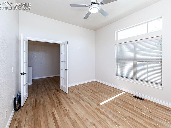 Move in ready! Beautiful ranch home in the highly desirable Broadmoor Park community. Located at the end of a quiet cul-de-sac & backs to open space! Gleaming hardwood floors throughout the main level! Covered entry! Rounded corners! Neutral colors! Decorator ledges! Great Room features gas fireplace and vaulted ceiling w/fan! Gourmet Kitchen features a smooth cook-top, built-in oven, refrigerator, dishwasher, and disposal! Light and bright Sunroom offers relaxing view of the open space behind the home! Spacious Primary Bedroom features a ceiling fan, walk-in closet and adjoining 5pc. Bath with tile floor, soaking tub, separate shower and double vanity! Main level Laundry with washer, dryer & sink! The lower level has newer carpet in the Family Room and 2 spacious Bedrooms! Lower level also offers a large storage area! New furnace and a/c in 2022! New composite deck w/retractable awning in 2021! New tile roof in 2019! Stamped concrete patio! Rear fenced yard! HOA includes lawn care, snow and trash removal! Conveniently located to schools, shopping and Fort Carson!