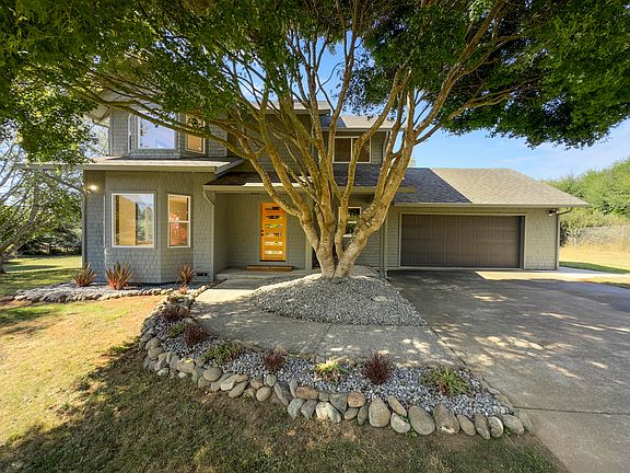 Nestled on a serene, almost one acre lot, this charming two story home beautifully balances modern updates with classic country appeal. Featuring 3 bedrooms and 2.5 bathrooms, this residence offers ample space for comfortable living. The flat, usable ground surrounding the home provides plenty of opportunities for outdoor activities, animals and gardening. Step inside to discover a tastefully updated interior, where contemporary design elements seamlessly blend with rural charm. The open concept living area is perfect for gatherings, while the well appointed kitchen boasts modern appliances and stylish finishes. Each bedroom offers a cozy retreat, with the master suite featuring an en-suite bathroom with oversized soaking tub. Additional highlights include an attached two car garage, ensuring easy access and storage. Enjoy the privacy of being at the end of the road, surrounded by nature, with community water services and a septic system for efficient living. Bordering Six Rivers National Forest on one side, this property is an ideal retreat for those seeking a peaceful lifestyle without sacrificing modern comforts.
