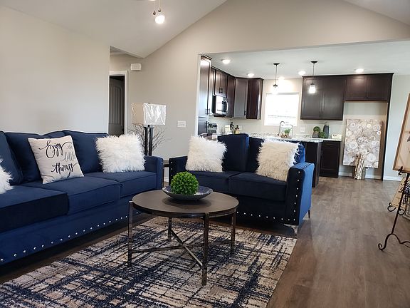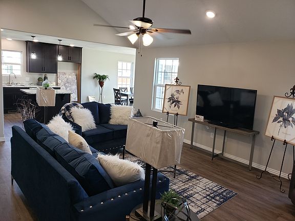 The spacious entry hall is ideal for a hall tree - to organize coats, bags and backpacks! The living room is large, roomy and full of light with cathedral ceiling features. The kitchen is the backdrop to the living room, with generous floor to ceiling maple cabinets and oversized island with hidden trash cans. for extra workspace or gatherings. The dining room is off the kitchen but still part of the gathering area. The dining area features lots of windows and patio door that steps onto the 12'x16' back patio - perfect for grilling. The 2 spare bedrooms are roomy and features oversized closets. The guest bathroom includes a double vanity and linen closet in hallway for the busy families. The master bedroom features tray ceilings and large walk-in closet. The master bath has large walk-in shower, double vanities and large linen closet for storage. The laundry is off the garage featuring cabinets over the washer/dryer area and another large linen closet as well...this home has tons of storage!!This home is move in ready!! The home is located on a quiet cul-de-sac. The covered front porch beckons to come and a sit a while. The backyard can easily be fenced for further privacy. Call today for more information and your private tour!