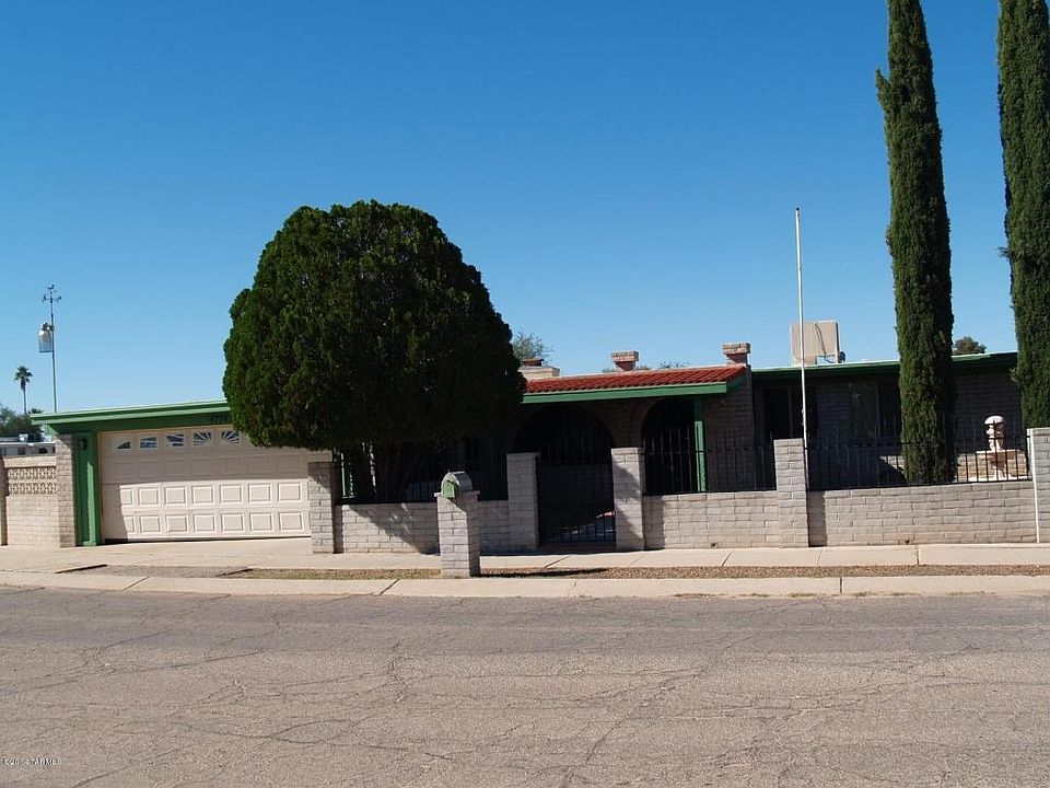 Beautiful 4 bed, 2 bath home with family and great room, multiple interior block archways, oak kitchen cabinets, newly installed carpet in all bedrooms and recently painted interior. Ceiling fans throughout the house, ceramic tile, spacious floor plan, evaporative and A/C cooling. A nice 2 car garage, and sparkling pool to keep you cool during the hot summer months. Beautiful large front yard fountain, and a detached covered carport for extra parking. A beautiful view of the Rincon Mountains for those who love to watch the sunrise!