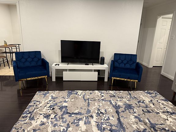 3-bedroom, 2-bathroom residence features a modern kitchen with granite countertops, rich wood cabinetry, and stainless-steel appliances. The bright and spacious living area boasts recessed lighting and upgraded flooring throughout.