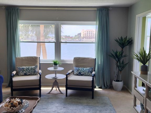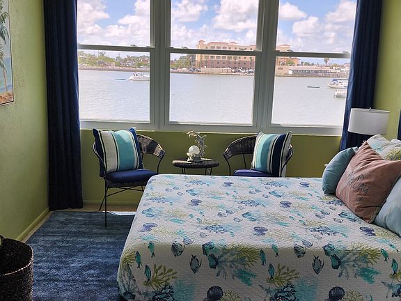 Professionally decorated, stunning views, great location in Madeira Beach! Short walk to dining, shopping, music venues and beach! 55 plus, in Sea Towers gated community. Lots of amenities! Fully remodeled bath with walking shower, kitchen updated. Unit has a king suite and second guest rm. with view and queen bed for guests. Just a few steps out to patio that overlooks the intercoastal, great for watching dolphins and sunsets! Includes covered parking space. Owner is a local resident. Rates posted are for on season.