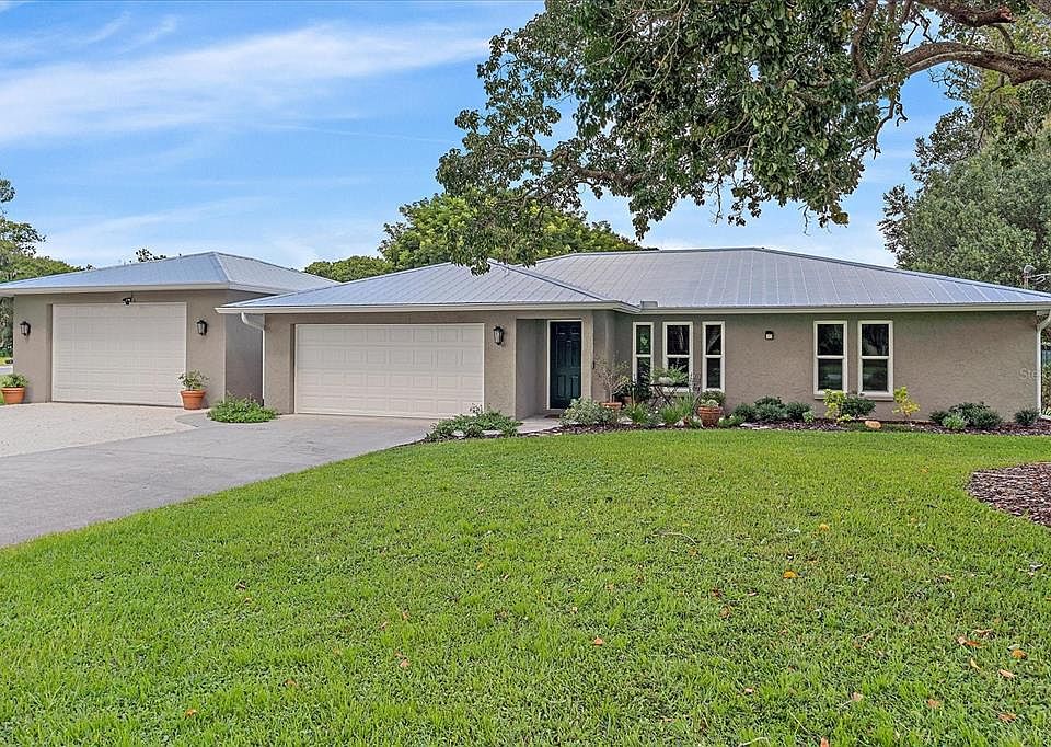 Situated on a generously sized, west facing corner lot in top-rated Ashton Elementary School District, just a short walking distance away! This beautiful 3 bedroom, 2 bath WATERFRONT home is a MUST SEE! Located on a quiet street, with major curb appeal, expertly designed and maintained landscaping is just the beginning of the MANY UPGRADES this ranch-style home has to offer. An inviting open floor plan with split bedrooms provides a nice flow for daily activities and entertaining. The modern kitchen looks out over the backyard and features a large island with breakfast bar, sleek quartz countertops, and mosaic backsplash. Solid custom wood cabinetry, stainless appliance package, and crown molding will delight the chef of the house! The dining and family room have backyard lake views providing stunning evening sunsets. Each of the three bedrooms offer large walk-in closets, and both bathrooms have new quartz vanities and plumbing with new faucets and showerheads. Begin and end your day on the lanai overlooking your private fenced yard with mature shade trees and lake views. The 32 x 24 workshop with new gravel drive is a great place to store your boat, recreational vehicles, or make into a studio. Additional features include new AC in 2018, new electrical fans, lights, light switches, and outlets throughout, 650G water reclamation system, new interior doors, new Schlage hardware inside and out, outdoor shower, new 40 YR metal roof in 2020 with hurricane straps, new impact resistant windows and sliding doors in 2020, 3- Phase water filtration system with reverse osmosis, new gutters, and a new energy saver water heater. Redone with attention to every detail, this is your move in ready opportunity to live in a great community with no deed restrictions, just minutes to downtown and Sarasota beaches. Do not miss out! Call now to schedule your showing today!
