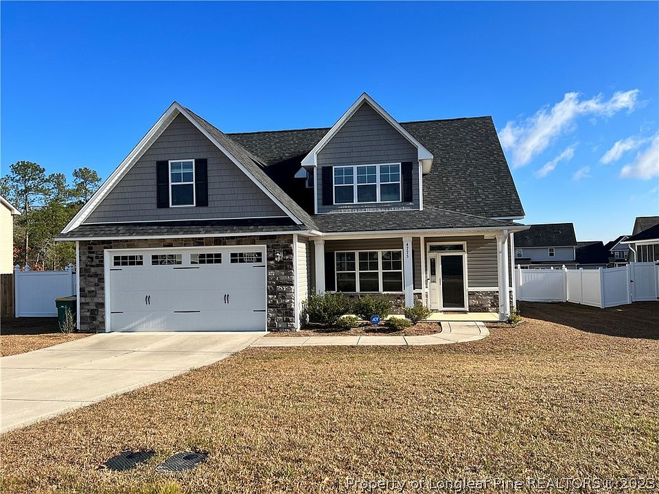 What a beautiful home located in the newly established subdivision of Georgetown Estates in the desired Jack Britt school district. 4 bedroom, 2 1/2 bath with a Formal dinning room, stainless steel Kitchen appliances and granite countertops. Built-in speakers in the living room for your surround sound system and a computer study area. This home has so much storage. 2 closets in foyer and 1 closet next to the downstairs 1/2 bath. The master suite is located downstairs. The master bath features a garden tub, separate shower, walk in closet and a linen closet. Upstairs has 3 bedrooms a full bath in hallway. This home has a covered screened patio that walks out to the deck, a huge backyard, vinyl privacy fence and sprinkler system. This beautiful two story home could be your! Schedule a showing today.