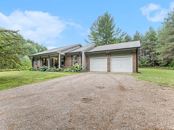 Tucked away in the woods, this picturesque brick and wood ranch home offers the perfect blend of privacy and comfort. A winding driveway leads you to the welcoming front porch, beautifully accented by lush greenery. The serene, expansive backyard is a haven for local wildlife and provides an ideal space for a garden or outdoor activities. Inside, the updated kitchen features hardwood flooring, modern cabinet hardware, and nearly new stainless steel GE Profile appliances, along with a spacious pantry. The adjacent dining area opens onto a large deck, perfect for grilling, sunbathing, or entertaining guests. This home is equipped with a newer high-efficiency furnace and a nearly new washer and dryer. It offers three bedrooms, two bathrooms, and a 2-car attached garage. The seller is also offering a home warranty, making this an excellent option for any buyer. The seller prefers cash or locally approved financing. Please note, as the sellers have a pet and work from home, all potential buyers must be pre-qualified before viewing.