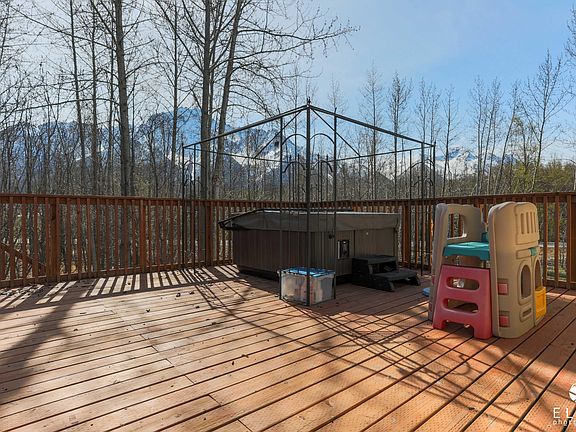 If you love entertaining guests then you need to see this home. This home features amazing views of pioneer peak. With 3 bdrm 2 bath and a 3 car garage there is a lot this home has to offer. The master bedroom has a large walk in closet and private office. Upstairs there is a very large deck with a hot tub overlooking a fully fenced back yard. Perfect for those Alaskan summers.