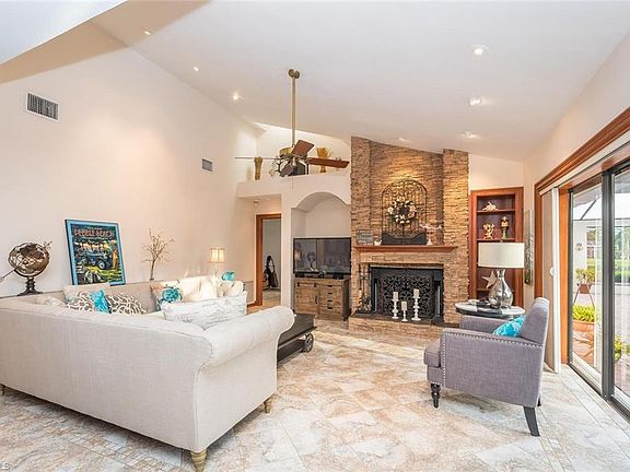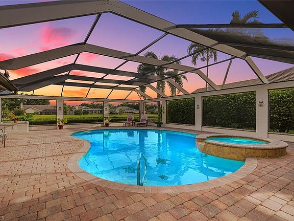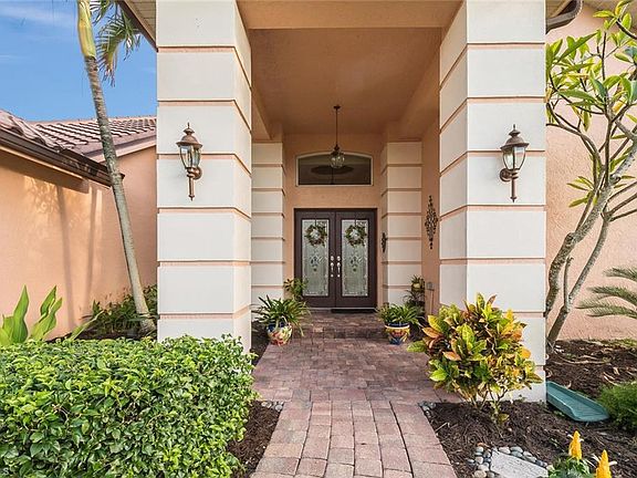 Beautiful estate home with oversized lanai, heated salt water pool with lake views on a cul de sac. Arthur Rutenberg Bimini pool home with dock. *Completely updated throughout with many extras *Custom kitchen features Granite countertops, solid wood cabinetry *Updated bathrooms featuring granite countertops *Living Room/Dining Room with tray ceilings, crown molding *Family room features wood burning fireplace with beautiful stacked stone, solid cypress wood mantel & slate hearth *Handcrafted solid wood cabinetry & Ironaway in Master Closet. *Tile & hardwood flooring *Oversized updated lanai with pavers & concrete pillars, and beautiful oversized saltwater system pool and spa with Jandy/Aqualink System *Oversized 2-car garage *Boat dock *Newer roof (2011) *Newer A/C (2012) *Newer Garage door (2013) *Furnishings are negotiable *Beautiful lakeview This home is located on a quiet cul de sac, steps away from the clubhouse, pool, tennis, gym and all amenities.