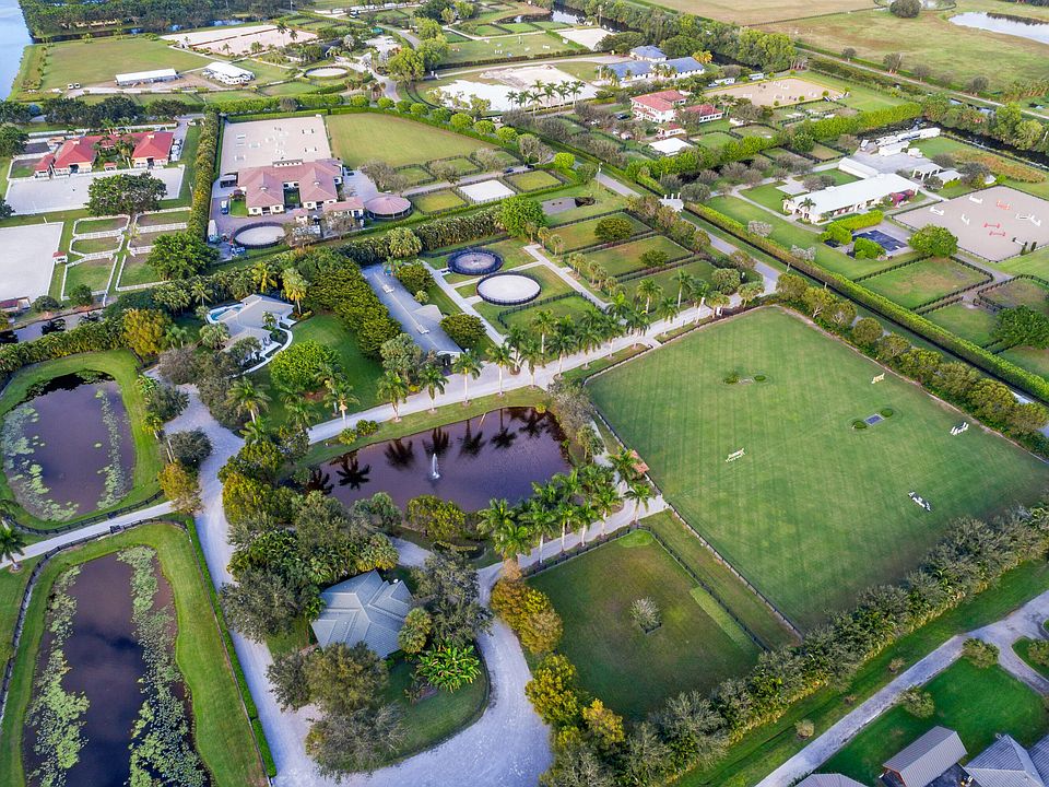 One of the most scenic & sought-after equestrian training facilities in Wellington. This pristine 10 acre farm features a top of the line grand prix field, a 16 stall barn, 4-horse walker, round pen and 5 large grassy paddocks. A sophisticated 4 bedroom, 5 bath custom built staff quarters overlooks the pond and grand prix field. A 3 bedroom, 2 & 1/2 bath pool home with garage complete this excellent equestrian property. Plenty of room for a covered arena. Located close to the new back gate of Wellington International Show Grounds. Adjoining 20-acre farm also available for purchase, MLS#: RX-10852410.