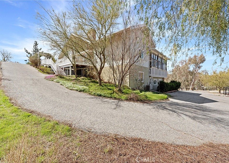 Enjoy country living on this 2.5 acre fully fenced lot with panoramic views in the peaceful community of Aguanga. This charming 1,800 sqft home features 2 spacious primary bedrooms with ensuite bathroom and high ceilings throughout the main living areas. The large family room has lovely wood beamed ceilings and a cozy fireplace with a beautiful stone surround. There is a massive separate multipurpose/living room and craft room with walls of glass and views for miles. Downstairs, just off the attached 2 car garage, is an additional bedroom, bathroom and kitchenette. A peaceful balcony with a retractable awning is a great place outdoor dining and entertaining. A covered carport is located just outside the front door. Outside, you will find a supersized detached garage with ample room for parking RVs, trailers, boats and recreational vehicles and it has workshop and a bathroom. There is plenty of room to build additional structures, a horse coral, a barn or AUDs.