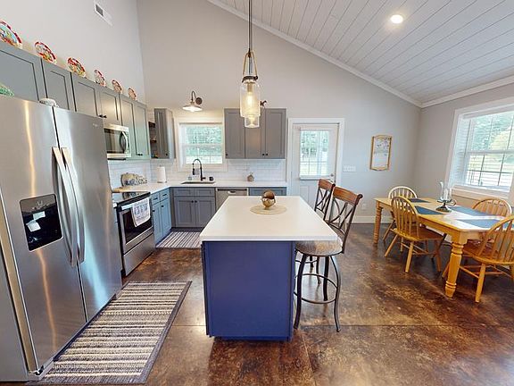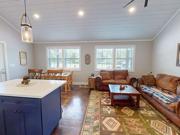 Immaculate Shop house with spacious two bay garage, great storage, two car carport and covered equipment shed waiting just for you! Situated on 5 ac +/- joining TN Wildlife Management Area that connects to Kentucky Lane. Ample room to build home on property as well. Garage is 40x40 with 2 passage doors w/ 12 ft walls, 20x20 storage loft above living quarters, 24x40 attached covered carport, 287x40 lean too. Kitchen features Korean counter tops, tiled back splash, eating bar, tiled shower in bathroom. Dark walnut stained concrete floors in living quarters. Nice fire pit. Limestone driveway.Don't miss this one!