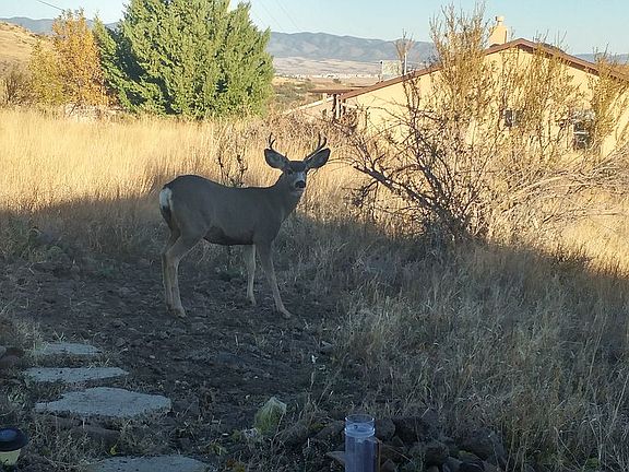 Best views in Diamond Valley located at the top of the hill. Wildlife lovers paradise, antelope, deer, coyote, javelina and bobcat sightings regularly. Home is adorable inside! Open dining and living room floor plan with fireplace. New refrigerator, stove, dishwasher and microwave. Excellent heat and air efficiency with new, "smart home" HVAC system and all new Pella Windows throughout. Electric (no propane), perfect set-up for going solar. New insulated, Tuff Shed build in back, 10x12 downstairs, 8x10 upstairs. Perfect for hobbies, storage, or even a little guest house.