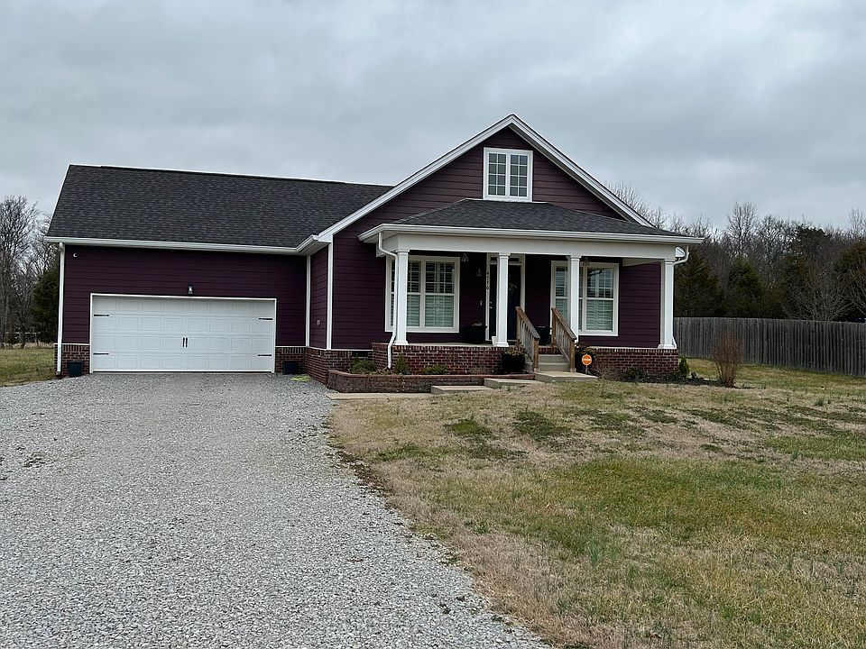 Absolutely charming home with rocking chair front porch on one acre in a quiet neighborhood in desirable Chapel Hill, TN. Country setting with wide open spaces and room to garden. Easy to care for laminate flooring in all rooms except tiled baths. Well maintained with new appliances and white plantation shutters throughout. Great closet space and oversized garage with heater. Vivint Security System. Franklin, Spring Hill and Columbia all within a short commute. Enjoy Henry Horton State Park and Golf Course and kayaking on the scenic Duck River nearby. Lease term is 1 year. Tenant pays all utilities. Tenant is required to carry renters liability insurance. No pets allowed. No smoking. Lawn care is negotiable. Landlord pays costs of monitored security system and quarterly pest control. First month rent plus security deposit due at signing.