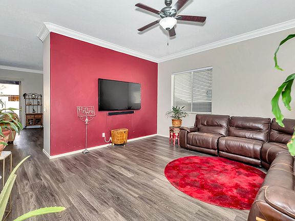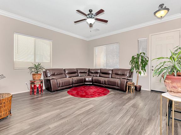 Welcome Home! This Beautiful Granville Home Features 3BD/2BA/2+Gar, 1660 SqFt. Large, Open Courtyard Perfect for Entertaining. Front Entrance Leads to Spacious Living Room with 10' High Ceilings, Crown Molding, Vinyl Plank Flooring, Lighted Ceiling Fan and Faux Wood Horizontal Blinds. Light and Bright Kitchen w/Island, Stainless Steel Appliances, Closet Pantry and Recessed Lighting. Informal Dining Area with Bay Window and Horizontal Blinds. Family Room w/Cozy Gas Fireplace, Media Niche, Vinyl Plank Flooring and Sliding Glass Door w/Access to Rear Covered Patio. Main BD/BA includes Bay Window, Large Walk In Closet, Garden Tub, Glass Enclosed Shower and Private Toilet Rm. Other Features and Upgrades include Extended Front Porch Patio Cover, Ext Rear Covered Patio, 8' Garage Door w