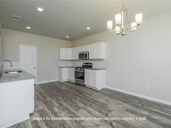 The beauty of this home goes well beyond the eye-catching façade. A large, open living room flows seamlessly into your dining area and large kitchen. Featuring a powder room on the first floor, your guests will enjoy their privacy without having to use a shared bathroom. Head upstairs where you’ll find three bedrooms for all your loved ones to enjoy. Home includes granite countertops throughout, wood cabinetry, ceramic tile in baths and utility. Primary suite includes a separate shower/garden tub and large walk-in closet with built-ins. Everything about this home delivers style, craftsmanship, and spaciousness. Additional options included: Stainless steel appliances, additional cabinetry in primary and secondary bathrooms, painted cabinets throughout, integral blinds in rear door, additional LED recessed lighting, and pendant lighting.